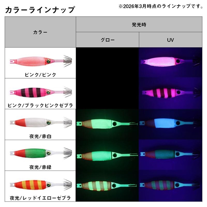 硬質素材のボディーの輝きと軟質素材のボディーの組み合わせで、集イカ性能と深く抱き込むことでのフッキング率の向上を実現した新感覚ドロッパー。絶妙な浮力と発光ボディで、イカを誘いバイトに持ち込む。バイトしてからはマシュマロボディのベイトフィッシュライクな触感で、より深く抱き込みフッキングチャンスを増やす。強度と刺さりの良さを両立した日本製素材のスーパーシャープフックにより、フッキング率が向上。[EMERALDAS DROPPER SOFT]