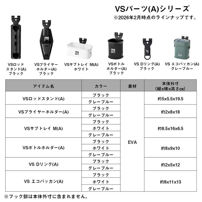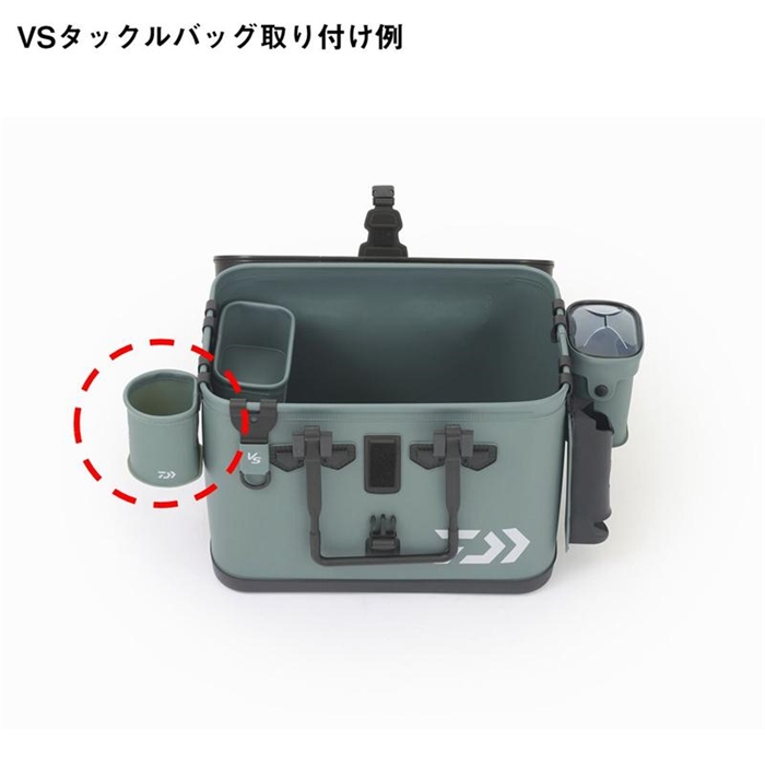 多くのEVA製タックルバッグに取り付け可能で、機能を選んでバッグをパワーアップ。600ml程度のペットボトルを収納できる他、背の低いボトルや缶なども取りやすい背低仕様。また、タックルバッグのかぶせブタと干渉しにくいロングフックも付いています。さらに、EVA素材を使用しているため、汚れを落としやすく丸洗いも可能です。[VS BOTTLE HOLDER(A)]