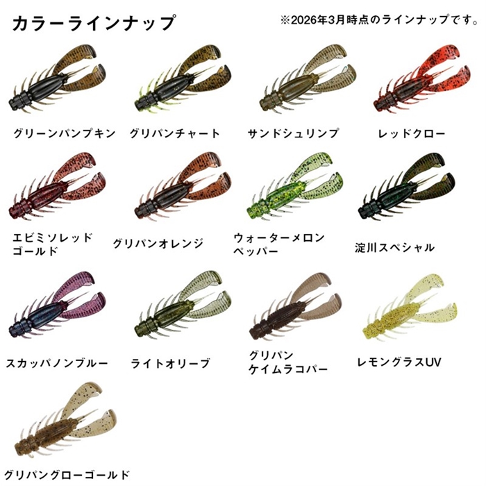 アーバンツイスターは、水をしっかりとつかむアーム形状と、アームに配置された細かなリブの効果で水を強く撹拌。濁り等でチヌが視覚に頼ってエサを探せない時や、広大なエリアでチヌの居場所が絞れない時にも、遠くのチヌに気づかせる力を持つ。また、ショートバイトが多い釣りであるため、フックアップに持ち込むためのアイデアを随所に盛り込んでいる。シルバーウルフシリーズのワームに共通する、ボディ後端から1/3のあたりに配置した深いクビレは、バイトの際、ボディが折れ曲がり、フッキングミスの防止に役立つとともに、当社独自のテクノロジー「アミノX」とエビ粉をボディ素材に配合することで強いバイトを引き出し、高いフッキング性能を実現している。[SILVER WOLF URBAN TWISTER][26new16]