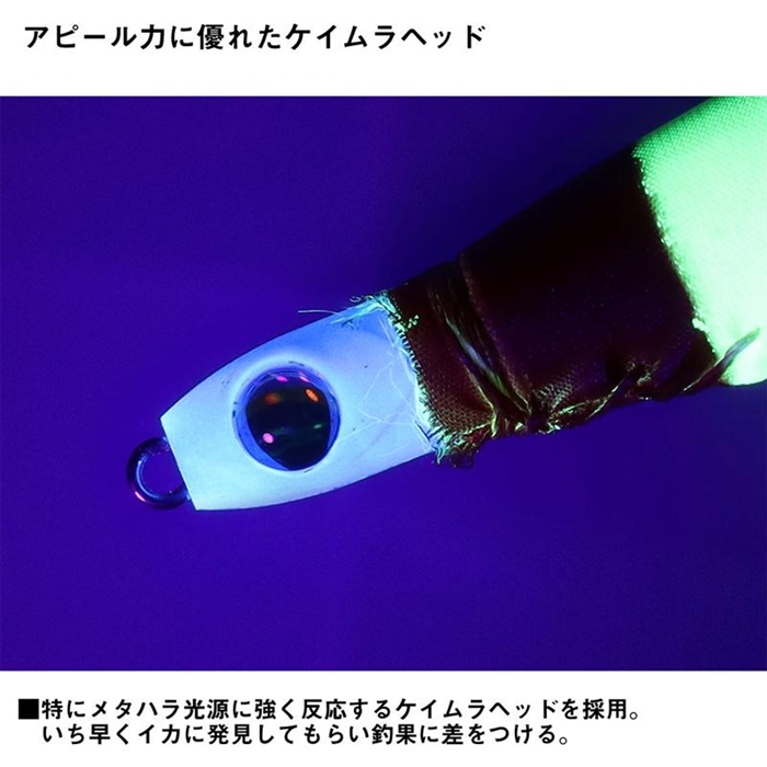 ドロッパーを使用した釣りでベストなパフォーマンスを発揮する専用設計。抱いたら離しにくい柔らかな触感。フッキング率を向上させるボディーとカンナの絶妙バランス。ドロッパーを使用することが主流となった現代のイカメタルゲームでは、フォール中にメタルスッテが上方から持続的な抵抗を受けるが、そのような環境下でも姿勢を崩さず、安定したフォールバランスを維持。[EMERALDAS METAL SUTTE]