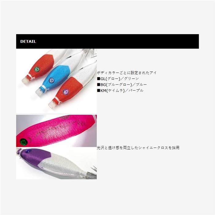 【クレイジーオーシャン/Crazy Ocean】ボディ素材のカラーを「グリーン夜光」「ブルー夜光(弱発光)」「ケイムラ」とアピールのパターンを変え、より緻密なVisualフォーメーションを組む事が可能となり、新しい進化を遂げたVシリーズ。数多の試行から選ばれたボディカラーとクロスの組み合わせによるラインナップ!その日のパターンに合うカラーを選んで釣果アップを狙ってください!