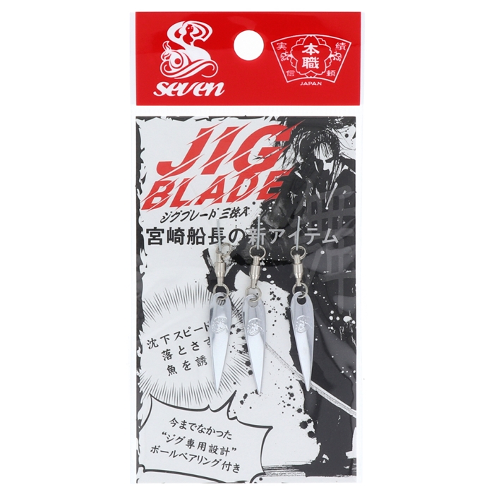【ガイドサービス セブン/SEVEN】宮崎船長の新アイテム!欲しかった物は、使い易いブレード。ブレードの水流を利用しジグのフォール姿勢を安定。動きすぎないブレードの作り出す水流・波動は魚の警戒心を食欲と好奇心に変える。ただ巻きでもブレードが重くならない使い易さとフッキングを邪魔しない形状。ジグの沈下スピードをできる限り落とさず、魚を誘う。[JIG BLADE]