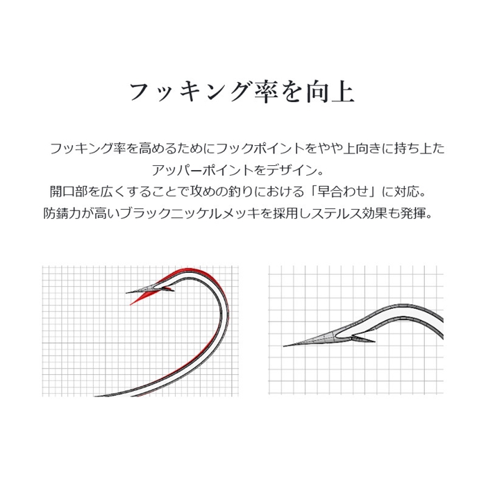 【フック】 材質/ハイカーボンスチール 表面処理/化学研磨 平打ち 防錆Bnメッキ 降伏応力/13.5kgw 線径Φ1.30