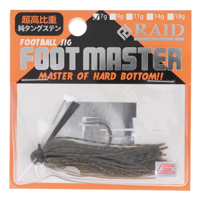 【レイドジャパン/RAID JAPAN】素早いフォールスピードとリアクション効果を最大限に活かす超高比重焼結タングステンヘッドを採用。超高感度ボトム感知性能&ヒッティングサウンドによる高い集魚力。太さや本数を吟味し、フォールスピードと絶妙な水押しを両立したオリジナルシリコンラバー。あらゆるフィールドにマッチする絶妙なサイズ感と強度、ショートバイトを確実に貫くフッキングレスポンスを両立したオリジナルテフロンコートフック。素材&線径を吟味しウェイト毎に最適な本数に設定したブラシガードはフッキングを妨げない範囲で最大限にスナッグレス効果を発揮する絶妙設定。JB・NBC認定Fecoアイテム[フットマスター][23new16]