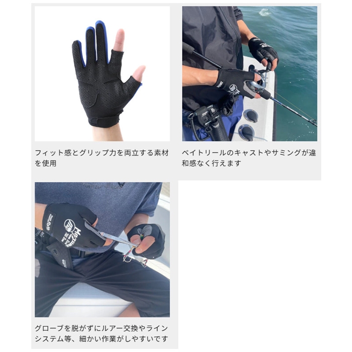 【オレンジブルー/ORANGE and BLUE】コンセプトはグローブ嫌いの人に!!グローブをしていてもキャスト、サミングが効く!mazumeのライトグローブの最大の特徴は、装着感がやわらかく、それでいて丈夫さを兼ね備えていることです。さらに、釣りのシチュエーション別に選ぶことができます。2本カットはスピニングリールのキャストの感度、ベイトタックルを用いたときの、サミング時に親指が効くようにしています。また、寒い時期にメタルボディのリールをパーミングする際の「冷たっ」というストレスをなくすと同時に、しっかりとしたパーミングを可能にします。人差し指と親指がカッティングされているのでスナップ等にラインが結びやすいのも特徴です。