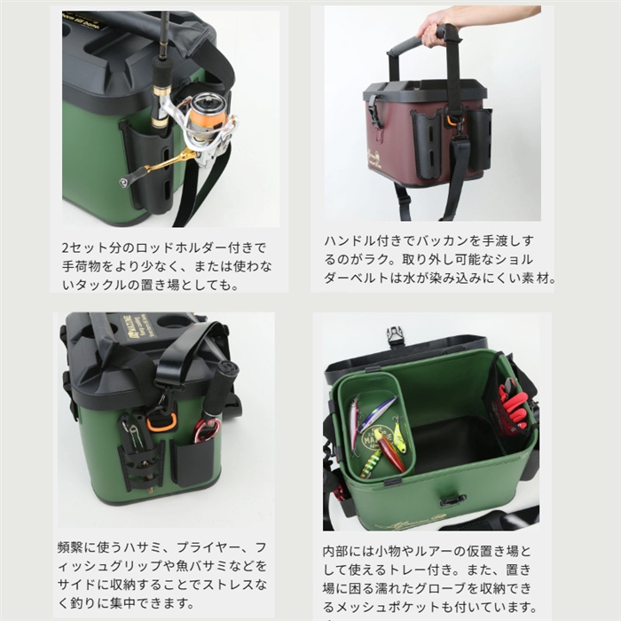 【オレンジブルー/ORANGE and BLUE】釣り人にとって便利な機能が詰め込まれた多機能バッカン。一番の特徴は形状にとことん拘ったドリンクホルダー!!上蓋は樹脂製で、ドリンクホルダーが付いています!そのため揺れる船上でもドリンクの置き場に困りません。特に缶ビールがしっかりとホールドされ、揺れる船上でも絶対に倒れないというところに拘りました。500mlのペットボトルと350ml缶も置けます。※形状によってはフィットしない場合があります。[mazume]