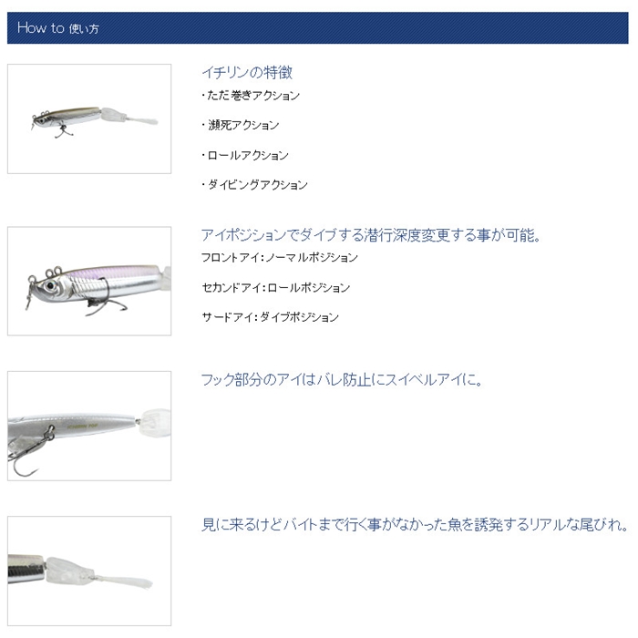 【ディスタイル/DSTYLE】バスが本当に食いたいものは何なのか。バスは『生きている』ワカサギを好んで捕食する。青木唯プロデュース『水面に咲く、一輪の花』ニューコンセプトワカサギタイプルアー。今までのワカサギ系プラグの大半はデットフィッシュを模していた。本物のワカサギは泳ぐ時、瀕死状態でも尾びれを動かして泳いでいる、その動きをハードルアーで実現させたのがICHIRIN。見に来るけどバイトまでいく事がなかった魚をリアルな尾びれアクションで誘い、スイッチを入れるエスケープアクションでバス仕留める。ICHIRIN一つで表層付近でワカサギや小魚を捕食しているバスに対してあらゆるアプローチが可能。価値ある1匹を逃がさない。[イチリン 70F]