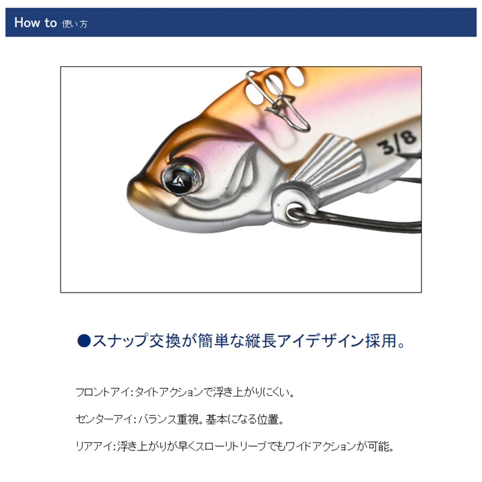 【ディスタイル/DSTYLE】『釣果を加速させる+α』誰でも扱いやすいシンプル設計にベーシック形状+1デザイン。バイブレーション感を増幅させるフィッシュフィンを採用したハイコストパフォーマンスメタルバイブレーション。アクションのキレ、レスポンスはもちろんメタルバイブのセンター付近にあるフィッシュフィンが水の抵抗を受ける事でバイブレーション感がアップ。また副産物としてメタルバイブの頭に寄りがちなウエイトバランスも改善。誰でもイージーキャッチ出来るメタルバイブレーション。[Dα-Metal Vibration][ディーアルファメタルバイブレーション]
