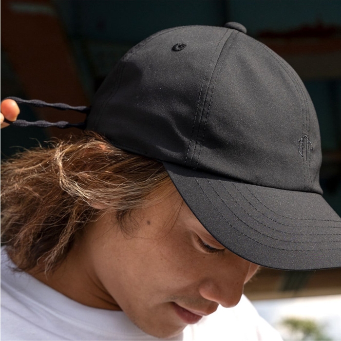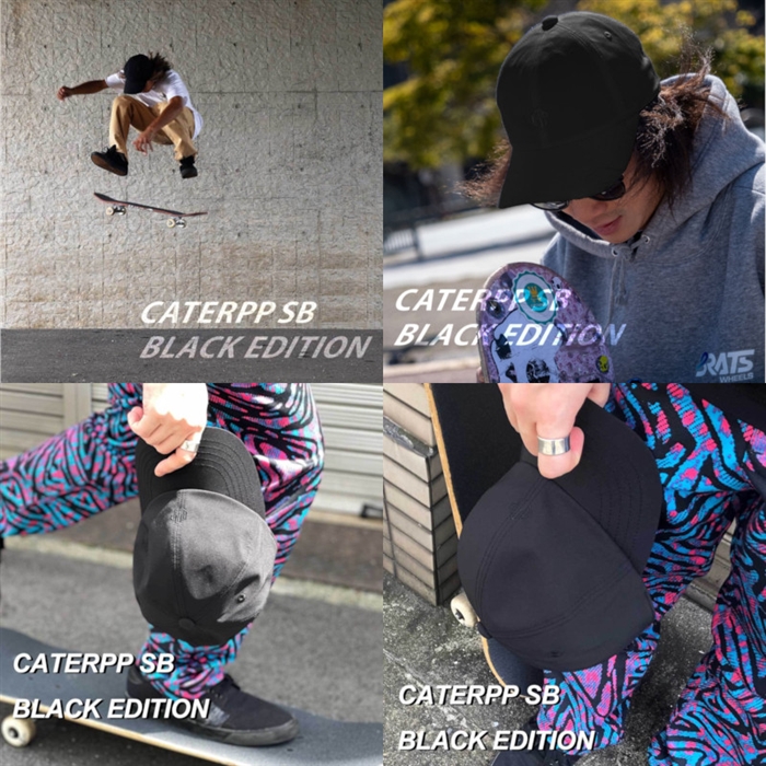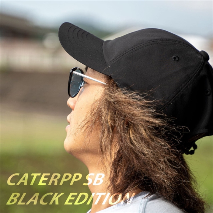 【キャタップ/CATERPP】飛ばない帽子CATERPP SBから【漆黒のBLACK EDITION】が登場!生地、刺繍、コードに至るまで全て黒で統一しました。生地自体にUVカット機能がついており、強い日差しからガードしてくれます。黒い帽子にありがちな、紫外線による帽子の日焼け・色褪せにも強く、長く愛用いただけるように作りました。[CATERPP SB CAP(BLACK EDITION)]