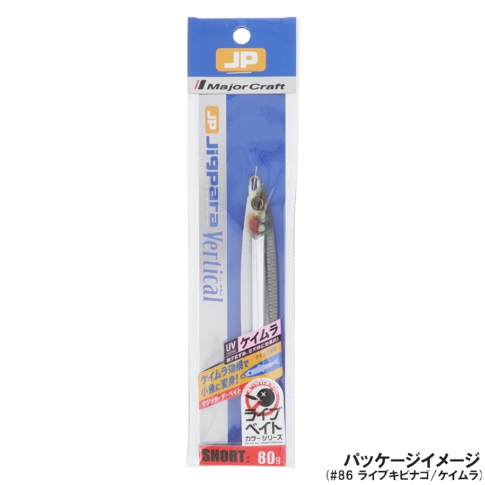 【メジャークラフト/MajorCraft】水中では小魚に変身するジギング用ライブベイトが登場!ジギングでの定番ジグとなったジグパラバーチカル ショートタイプに、ライブベイトカラーが登場!!太陽光が届きにくい水中では、紫外線によりボディーに隠された小魚が出現!ケイムラ仕様の光る小魚とジグパラの波動のダブル効果で思わず魚も口を使うでしょう。[Jigpara Vertical SHORT]