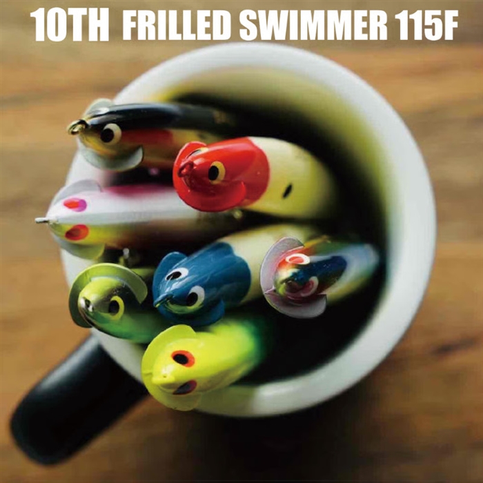 【ポジドライブガレージ/Pozi DRIVE garage】(ポジドライブガレージ創業10周年記念限定カラー)フリルドスイマーの特徴的なルックスである『エリマキリップ』は、一般的なミノープラグの構造としてポピュラーな「リップ=潜行板」ではなく、「エリマキ=抵抗板」としての発想。すなわち入力に対するブレーキ効果により、例え長い距離をリトリーブした場合でも潜行深度の変化が極端に少なく、ルアーをある一定層に留める事を可能としています。[FRILLD SWIMMER]