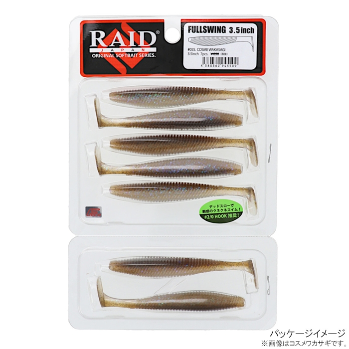 【レイドジャパン/RAID JAPAN】オフセットフック(#5/0クラス)のノーシンカーリグで使用すれば、着水直後からボディをくねくねと左右にくねらせながらピックアップまで全身全霊で魚を魅了。ヘッドからテールにかけての美しいボディシェイプ、マテリアル質感・硬度、ボディ上下のソルト配分などすべてのバランスを追求し、これまでのシャッドテールワームでは対応しきれないような超低速リトリーブ域においても、全身を強くダイナミックに動かします。自重を約19gに設定し、ノーシンカーでも驚きのロングディスタンスキャストを実現!その上適度なソルト含有量によって、デッドスローリトリーブでも沈みすぎることなくサブサーフェスをブリブリゆっくりとトレースすることができ、濁った水域や深い魚に対してもしっかりとアピールします。[FULLSWING][フルスウィング]