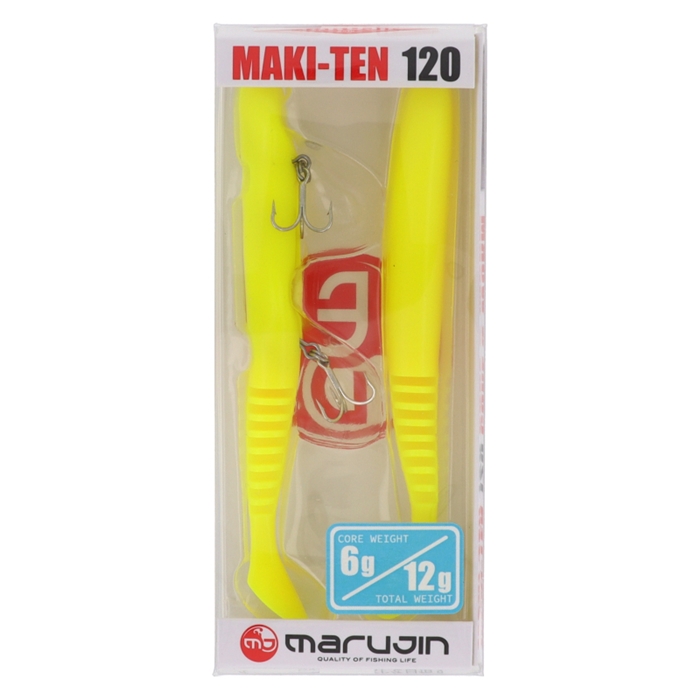 【マルジン/marujin】世界で唯一無二の「ノーテン」シリーズから派生した新機軸表層系ルアーとして登場しました。揺らぎをテーマにした「ノーテン」とは異なり、リトリーブでしっかりとしたロールアクションを発生させるのが「マキテン」です。プラグで起きるロールアクションとは別物で、スローリトリーブでも手元にブルブルと伝わるバイブレーションは、まさに異次元と言えます。採用したシャッドテールは後方波動中心のギミックです。従って水深は浅いほど効果を発揮します。水深30cm未満でもロールアクションをスローに誘え、使用法はシンプル。ただ巻きからストップ&ゴー(ぐるピタ)に加え、リフト&フォールでも使えます!プラグには絶対超えられない領域に到達した「マキテン」は、次の時代を築いていくルアーになります。[MAKI-TEN 120 CORE&WORM]