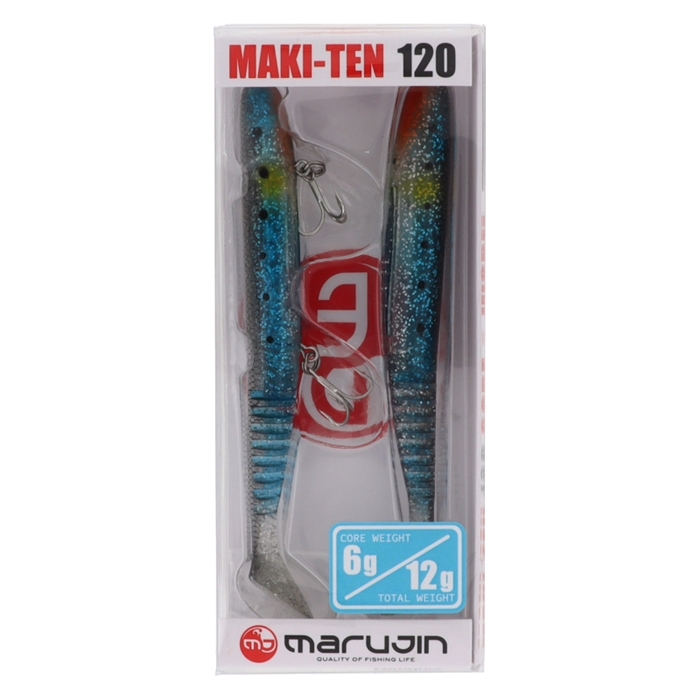 【マルジン/marujin】世界で唯一無二の「ノーテン」シリーズから派生した新機軸表層系ルアーとして登場しました。揺らぎをテーマにした「ノーテン」とは異なり、リトリーブでしっかりとしたロールアクションを発生させるのが「マキテン」です。プラグで起きるロールアクションとは別物で、スローリトリーブでも手元にブルブルと伝わるバイブレーションは、まさに異次元と言えます。採用したシャッドテールは後方波動中心のギミックです。従って水深は浅いほど効果を発揮します。水深30cm未満でもロールアクションをスローに誘え、使用法はシンプル。ただ巻きからストップ&ゴー(ぐるピタ)に加え、リフト&フォールでも使えます!プラグには絶対超えられない領域に到達した「マキテン」は、次の時代を築いていくルアーになります。[MAKI-TEN 120 CORE&WORM]