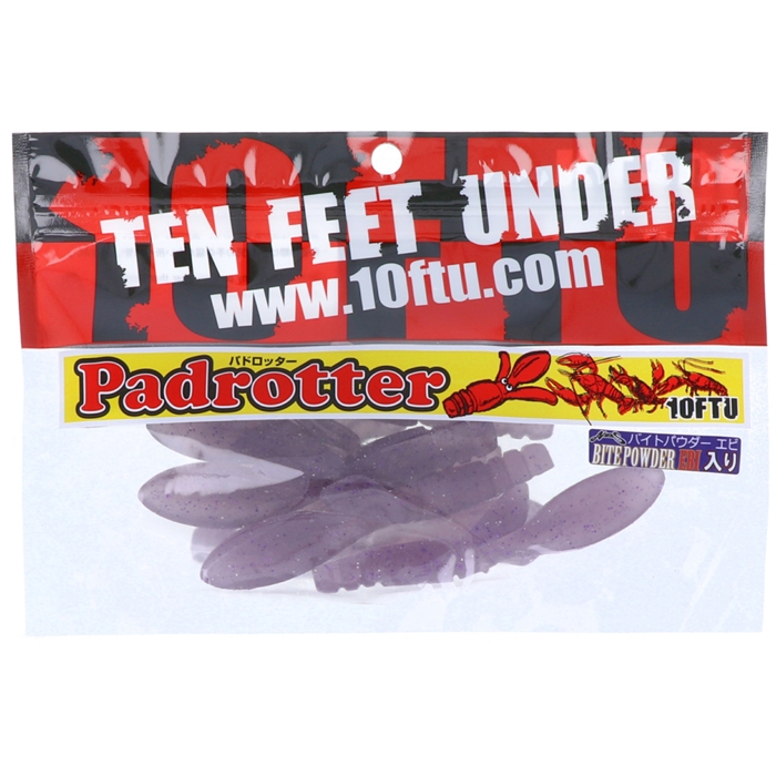 【ケナイオビー/KIOB】10FTUの求めるパワーを秘めたパドルテール。パドロッター最大の特徴は「肉厚のパドルテール」。テキサスリグやラバージグとの相性が良く、着底した際にこのテールが「ブルンッ」という強い水押しを生み出します。更に、ハンドポワード製法だからできる「浮力の高さ」と「マテリアルの柔らかさ」がナチュラルさを加えて、トルクのあるアクションを出します。サイドのレッグはパドルテールとは対象的にプルプルとした小刻みな動き。また、フォールさせる時や大きく引っ張った際には、パドルテール部とボディ部のくびれに倒れ込み、全体を見たときに甲殻類が逃げるシルエットを演出。表面は細かい凹凸加工を施し、甲殻類の表面をイミテートし視覚的にもアピール。アクション後に肉厚パドル倒れこむまでの時間をステイさせて、バイトを誘発するのを意識して使ってみてください。肉厚パドルの中にグラスラトルSサイズかMサイズを仕込んでサウンドによるアピールをプラスしてもGOODです。[10 TEN FEET UNDER Padrotter]