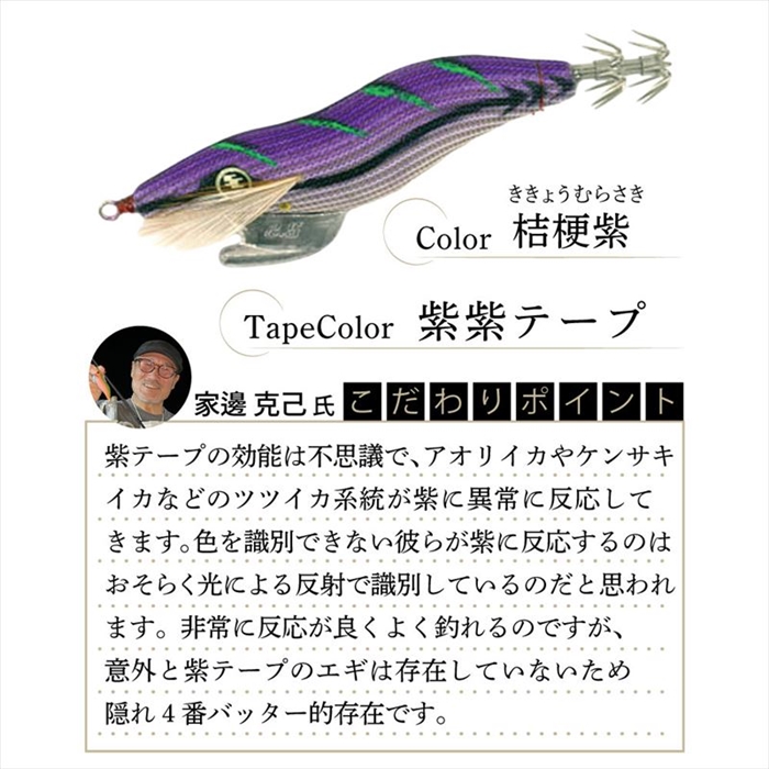 【スクイッドクラフト/SQUID CRAFT】34 家邊克己氏渾身の新ブランド『スクイッドクラフト』職人手作りの桐製で他の餌木には出せないイレギュラーな動きで、アオリイカに猛烈にアピール!特殊な形状のシンカーによりダートのキレを増やし少しのしゃくりで大きく動いてアピールします![チョウヤク サイセン キキョウムラサキ]