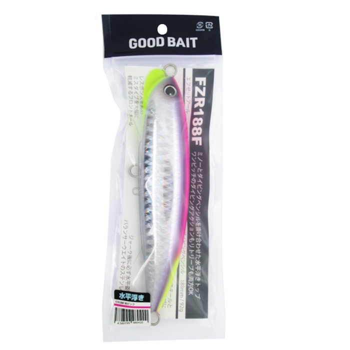 【グッドベイト/GOOD BAIT】世の中には様々なダイビングペンシルが存在する。しかしどれも似た様な形状、似た様なアクション。だから釣果に革新的に大きな差は生まれない。もう何かに似たルアーを作りたいとは思わなかった。釣れない時に全く違うアプローチで状況を打破する。そんなルアーを作りたい。じわじわ浮く水平浮き。ダイビングアクション。リトリーブでスイミング。経験した事のあるダイビングペンシルと違うので戸惑われるかもしれない。きっと日々ルアーを見続けている魚もそう感じるに違いない。[エフゼットアール 188F][23new16]