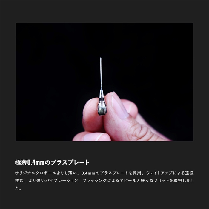 【ジャッカル/JACKALL】ボトム攻略の切り札として確立したジャンルとなったメタルバイブ。メタルクロボールはオリジナルクロボールのサーキットボードよりも薄い0.4mmのブラスプレートを採用し、より力強いバイブレーション感と共に重量アップによる更なる遠投性を手に入れました。大遠投での沖のボトム攻略や強風下でのボトムの釣りを快適に行えるアイテムに仕上がっています。通常色に加えメタルプレートならではのメタリックカラーがラインナップに加わり、フラッシングによるアピールも可能です。オリジナルクロボールと合わせ、様々な状況に対応することができます。[METAL KUROBALL]