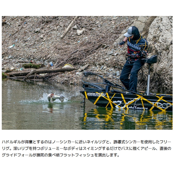 【イマカツ/IMAKATSU】最適サイズにリデザインしたハドルテールと深いリブが、心地よい引き抵抗をもたらしてくれるフラットボディの大型スイムベイト、それがハドルギルです。[Huddle GiLL]