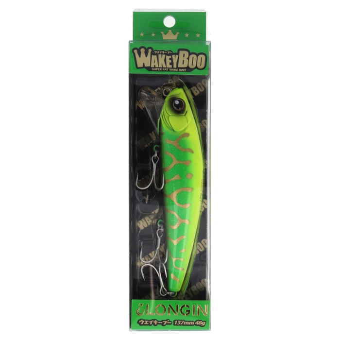 【ロンジン/LONGIN】超高浮力ファットボディが生み出す圧倒的水押しの強さで、クラス唯一無二のさらなるスロー域での魅惑のアクションを実現。超スロー巻きからの水面直下を艶めかしいローリング、リトリーブスピードが速くなるにつれてウォブリングが加わり、高速リトリーブになると強烈なワイドウォブリングに変化。計算されたウェイト可動域によって、アクションに合わせてウェイトが「ゴトゴト」と低音ラトルの役割を果たします。これが、遠くのフィッシュイーターにも存在を知らせると共に、ドシャローからドン深まで幅広い層にいる魚へアピールします。[WAKEY BOO]