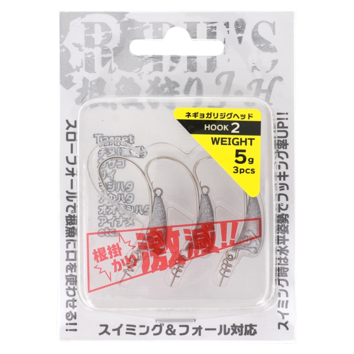 【ルーディーズ/RUDIE’S】ターゲットに口を使わせるよう、フロントからアンダーにかけ、ザグリ加工でフォールスピードを可能な限り抑制!! また、フッキング率UPの為、スイミング時には水平姿勢キープでフォール&スイミングの釣り共にカバー。ワームキーパー付属で、ワームのズレも軽減できる専用ジグヘッド。[ネギョガリジグヘッド]