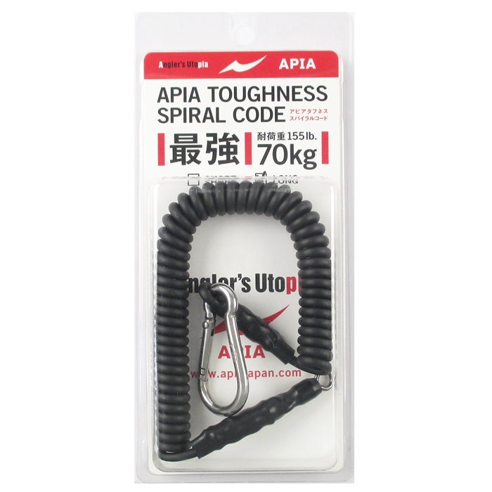 【アピア/APIA】耐摩耗・防錆・復元力。全てにおいて最強のスパイラルコード誕生。強度・耐久性に優れたタフネス仕様のケブラー芯入りスパイラルコード。接続金具には船舶艤装用品として実績の高い水本機械製作所製ステンレスカラビナを使用。スパイラルコード内部も錆びの心配が無いケブラーを使用し、軽量で高い復元力が特徴。[TOUGHNESS SPIRAL CODE]