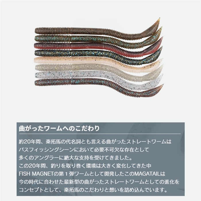 【フィッシュマグネット/FISH MAGNET】曲がったワームにこだわり続けてきた秦拓馬が今の時代に必要な形として進化させたFISH MAGNET第一弾ワーム、それが「MAGATAIL」です。[25new16]