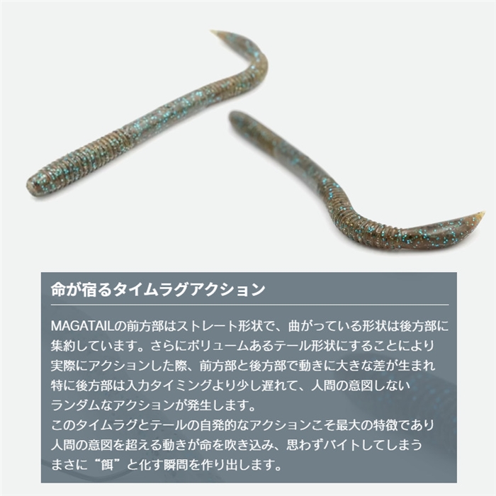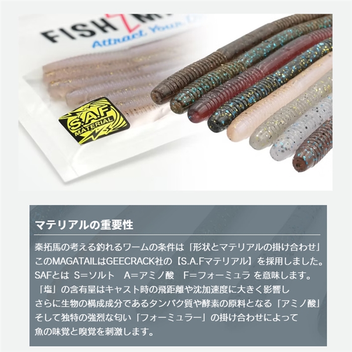 【フィッシュマグネット/FISH MAGNET】曲がったワームにこだわり続けてきた秦拓馬が今の時代に必要な形として進化させたFISH MAGNET第一弾ワーム、それが「MAGATAIL」です。[25new16]