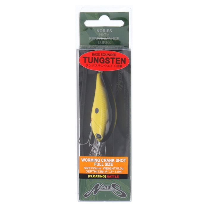 【ノリーズ/NORIES】オリジナル「ショット」の実績充分なアクションと軽快なヒラ打ち、優れた カバー クランキング性能をそのままに、キャスタビリティとアピール力、レスポンスをも 向上したのが「フルサイズ」。カラーによって使い分けるボーンホワイト系ABSとクリア系ABSのボディ素材+空気室最大確保構造+タングステン&スチールウエイト、それらの相乗効果で高浮力なキレのあるアクションを生み出します。クリア系ABSリップによるスモールシルエットとともに、ABS成型だから可能なリップ裏面 の「キャスティングフィン」が飛行姿勢を安定させキャスタビリティを向上します。そしてカラーと使うシチュエーションを考え合わせ、アピール系はラトル、ナチュラル系はサイレントと、カラーにサウンドを同調させた実戦的ラインナップとなっています。水深70cm-1.5mという、最もクランキングを多用する水深を手堅くカバーしていける、非常にオーソドックスなセッティングがクランキングの主軸を築きます。アシ際からリップラップ、消波ブロック、さらには点在するウィードクランプをストレスなく攻め続けられる、幅の広い使い勝手が最大の魅力です。[WORMING CRANK SHOT FULL SIZE][22new16]