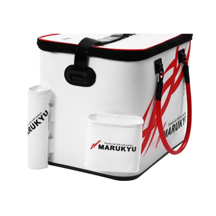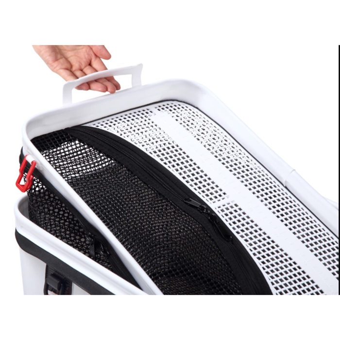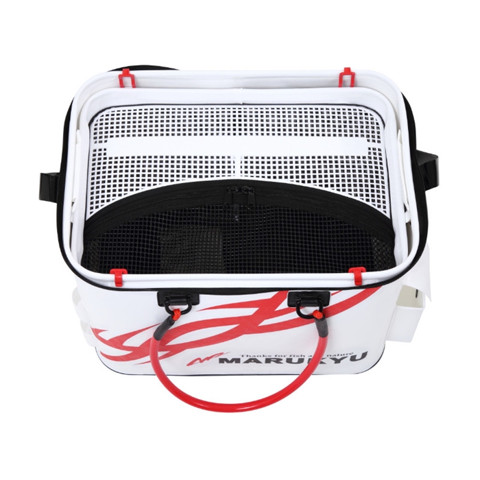 【エコギア/ECOGEAR】洗練されたデザインとトーナメント機能を充実。機能満載の「パワーバッカンSL5」に新色の「ブラック」を追加ラインナップ。取り外し可能なインナーメッシュカゴを採用したことにより、魚の取り出しがスピーディーに行えます。天面のフタ裏にもマルキユーロゴをプリントしたことで、フタを開けた状態でも見た目を損なうことなく使用できます。エアーポンプを2個セットできるポケットと、竿や玉ノ柄を一時的に立てておくためのロッドホルダーが標準装備となっています。マルキユーオリジナルのカスタムベルト搭載で、別売のロッドスタンドやサイドポーチを取り付けることで機能をさらに追加することができます。ショルダーベルトは防水となっているため、汚れやニオイがつきにくく衛生的です。