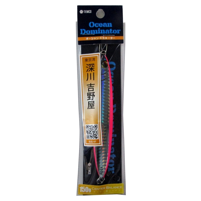 【ティムコ/TIEMCO】東京湾では主に秋-冬の深場タチウオ用として開発されました。オーシャンドミネーターのセンターバランスタイプは重量の割にコンパクトなため、潮流に強くサミングでフォール姿勢をコントロールすることによって、潮の速い深場でも速いフォールスピードを維持することができ、またショートジャークによってボディのセンターを中心に細かく動き、フラッシング効果が高いというのがこのジグの特徴です。