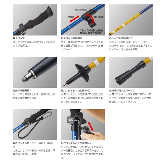 【ゴールデンミーン/Golden Mean】GMスティックは、強化アルミシャフトを採用した実用性とモバイル性を兼ね備えた軽量・折りたたみ式のフォールディングスティックです。水中歩行時の「害魚」や悪場歩行時の安全をサポートします。[GM STICK]