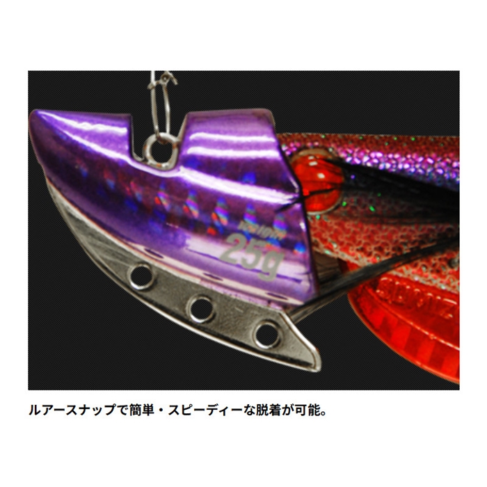 【タイアップ/TIEUP】エギのヘッドにセットすることでロケットスピードでディープゾーンへ一気にフォール。引き重りのない軽快なシャクリでティップランなどのボートエギングをサポートします。藻場攻略や潮流対策のためのプラスウエイトホールを採用。水深・潮流でセレクトが可能な25gから40gの重量と、新色アジカラーが加わり5色のラインナップです。