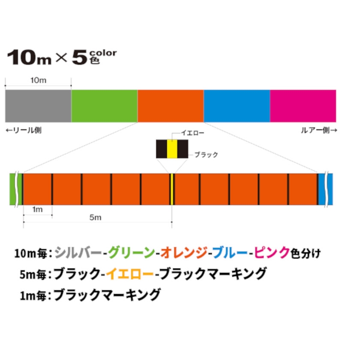 【マーキング】 1mごとにブラック、5mごとにブラック・イエロー・ブラックマーキング