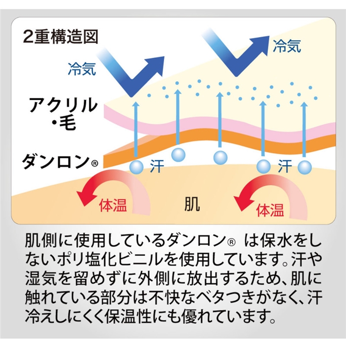【素材】 アクリル41%、ナイロン28%、ポリ塩化ビニル(ダンロン)28%、毛2%、ポリウレタン1%