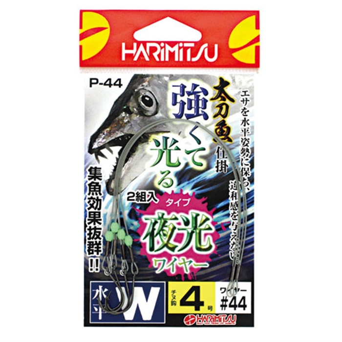 ハリミツ/マグバイト 太刀魚 夜光ワイヤー仕掛 水平W P-44 5号【ゆうパケット】