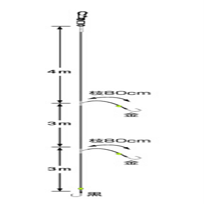 3本針。夜光ビーズ付。主に天秤フカセで使用します。3本針なので、大アジやハマチの数釣りにも効果的です。