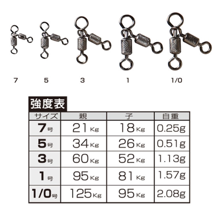 カラー・ブラック。ローリングタイプの親子サルカンだから回転がスムーズで絡みません。特に深海の釣りに威力を発揮します。