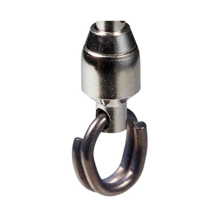 【ヴァンフック/VANFOOK】ベアリングスイベル専用リング『BS RING』採用のスイベル。全長が短く、強度の高いリング付きスイベル。スプリットリングはベアリングスイベル専用の『BS RING』を採用。高強度ステンレスワイヤーを使用した太軸設計で、長めに設定した単線部分がベアリングスイベルのアイにジャストフィット。リグに方向性を与える三角形状がトラブルも軽減。[BS SWIVEL][ビーエススイベル]