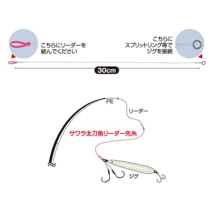 【オーナー/OWNER】見破られない透明極太フロロ!これで安心がっちりガード。サワラ・太刀魚釣りで一番何点であった魚歯によるリーダーカット。これを最大限に防ぎ、かつ遜色なくバイトを誘発させるために、極太透明フロロカーボンにこだわりました。長さは魚へのプレッシャーとスロージャークのような多本バリをセットした場合にもトラブルなく仕様できる30cm長。もちろん初心者の方にも結びやすい強化チューブ。これで巻き込みによるガイド損傷も防いでくれます。[TF-F1]