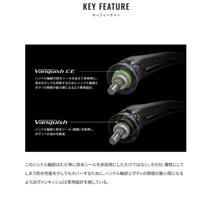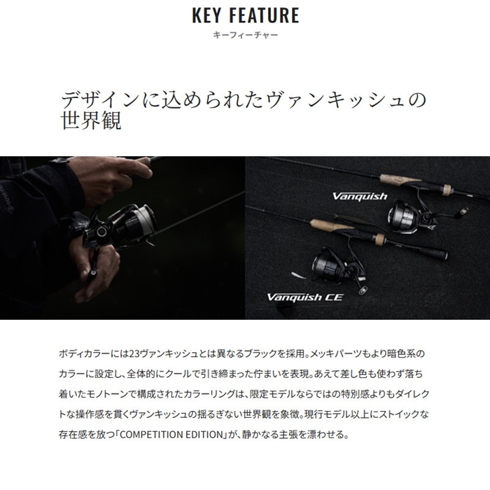 マグナムライトシリーズのフラッグシップモデルとしてテクニカルなゲームを支えてきたヴァンキッシュに、26年限定のCEモデルが新登場。見つめる先は23ヴァンキッシュとは異なる特別な領域。COMPETITION EDITIONの名が示す通り、エリアトラウトやバスのトーナメンターなど己のポテンシャルを最大限に引き出すスペックを突き詰めた。開発のコンセプトは圧倒的な「巻き感度」。23ヴァンキッシュに備わっていた防水性能の一部を削ぎ落してまで回転トルクの低減にこだわり、感度とレスポンスを徹底的に磨いた巻きの軽さはまさに異次元。リールの存在を忘れるほどダイレクトな操作感と情報伝達力は快感と感動を呼び覚ますだろう。ラインナップは1000から2500サイズまでの8アイテム。インフィニティクロス、インフィニティドライブなどのコアテクノロジーは23ヴァンキッシュを踏襲しつつ、巻き感度に徹底的に拘ったスペックでトーナメンターやコアアングラーをサポートする。[VANQUISH CE][26new02]