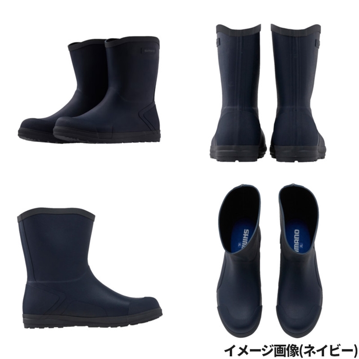 船釣り、特にエサを使用したシーンを考慮したデッキブーツで、特徴はシマノオリジナルのソールパターンにあります。高いグリップ力に加え、テーパー状に工夫されたパターンはソールの溝にエサなどが挟まっても取れやすくメンテナンス性にも優れています。また全数防水チェックを行ったラバー製品なので防水に関しては優れた性能を持っています。ブーツ丈はレインパンツの裾が足入れ口を覆ってくれる適度な短さに設定されています。[24new04]