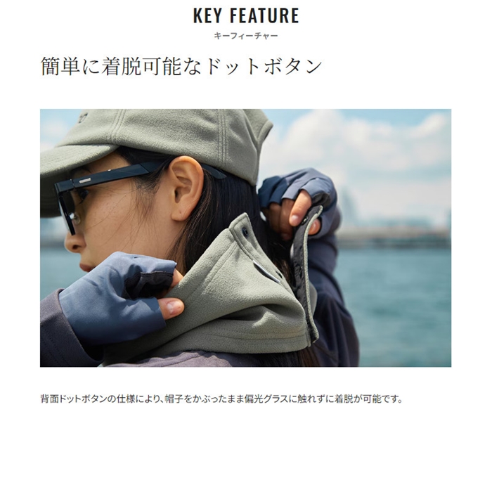 防風のウィンドストッパープロダクト バイ ゴアテックス ラボのフリース素材を採用し、保温性に優れたネックウォーマーです。背面のボタンで着脱する方式を採用しており、帽子を被ったままでも着脱が可能。寒さから首元を守るには最適なアイテムです。[24new04]