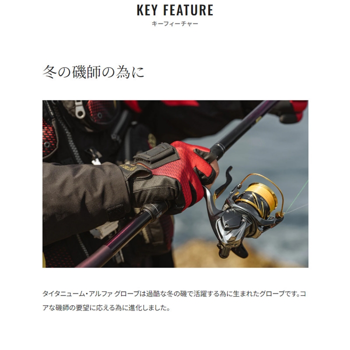 保温性のあるタイタニューム・アルファ採用。糸掛かりを軽減しつつ、鈎を取り出しやすい新マグネット鈎ホルダーや握りやすさにこだわった指抜き形状など操作性をさらに向上。操作性と保温性のバランスのよい3本指抜きタイプです。[24new04]