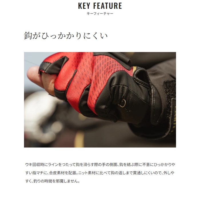 保温性のあるタイタニューム・アルファ採用。糸掛かりを軽減しつつ、鈎を取り出しやすい新マグネット鈎ホルダーや握りやすさにこだわった指抜き形状など操作性をさらに向上。操作性と保温性のバランスのよい3本指抜きタイプです。[24new04]