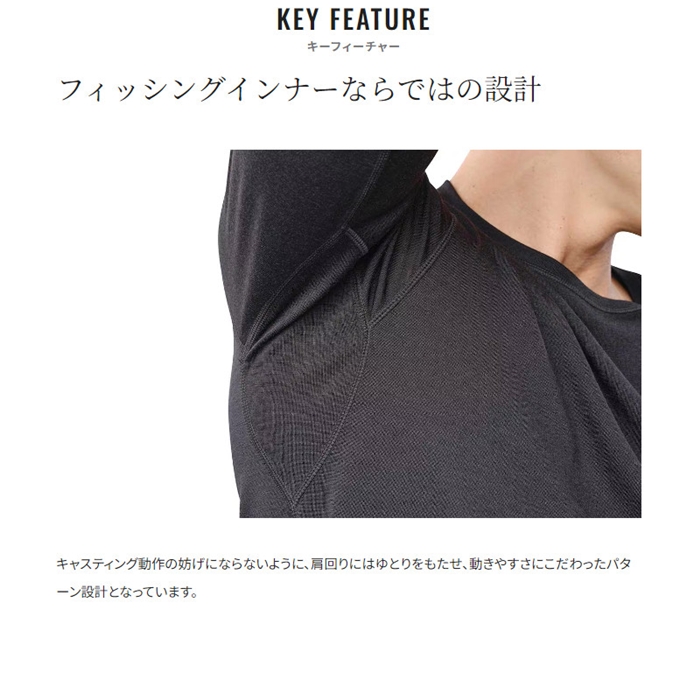 上質なメリノウールを使用したインナー。保温性と吸放湿性の高いウールを使用することで、寒暖差のある釣りの環境でも快適に過ごせます。ポリエステルとの混紡にすることで速乾性、耐久性も両立。ストレッチ素材で動きやすい設計で冬のアングラーを快適にサポートします。[24new04]