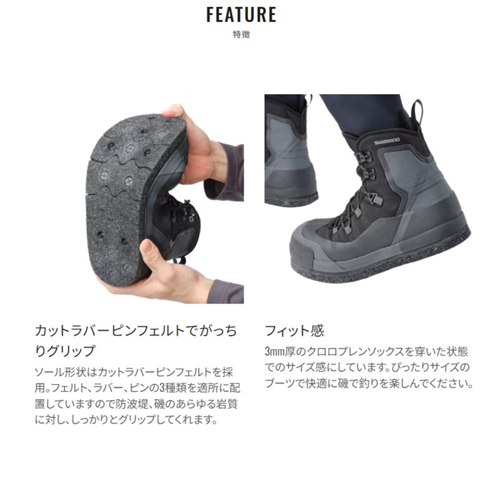 シマノ ロックショアガードブーツ カットラバーピンフェルト 25.5cm ブラック FS-25XX について