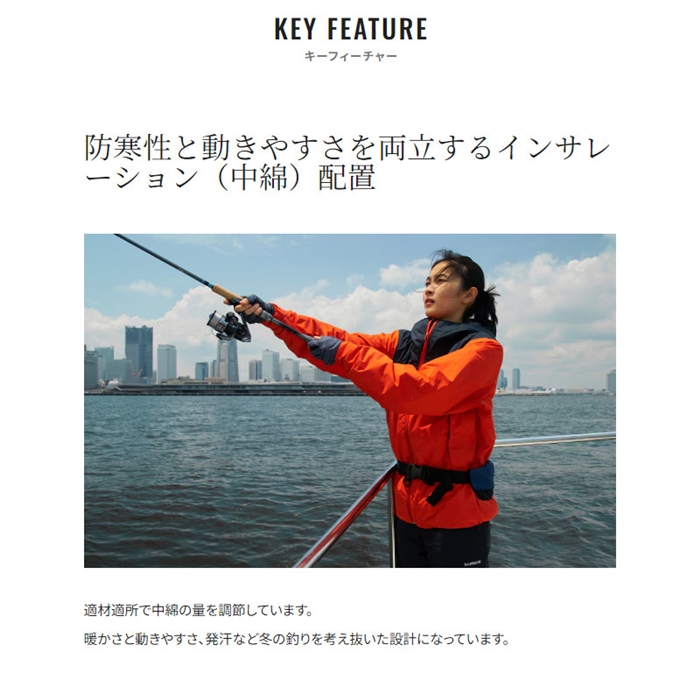 シマノの防水透湿基準「ドライシールド」をクリアした、メンテナンスしやすい化繊インサレーションレインスーツ。ライフジャケットを着用した際のポケットの位置や釣りの動きにあわせた中綿の配置など、釣り場で考えぬいて形にしたコストパフォーマンスに優れるレインスーツです。従来品RB-017Tと比較してメインのインサレーション(中綿)を150%へ増量し、保温性能も充分確保しました。[24new04]