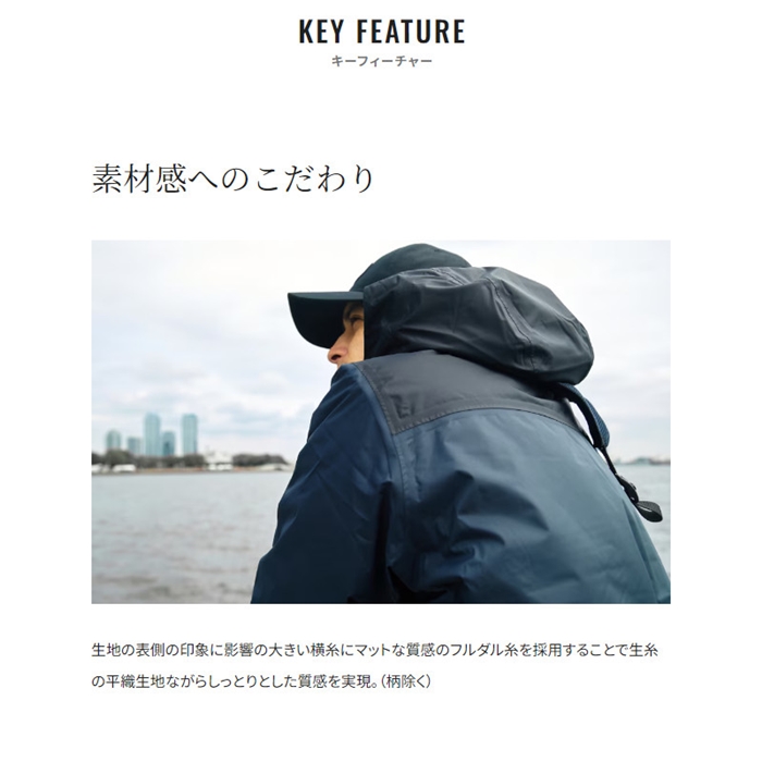 【素材】 ナイロン100%(ポリウレタン透湿防水加工) [中綿]ポリエステル100% [裏]ナイロン100% [部分]ポリエステル100%/ナイロン100%