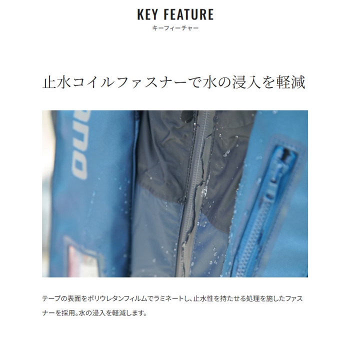 シマノの防水透湿基準「ドライシールド」をクリアした、メンテナンスしやすい化繊インサレーションレインスーツ。ライフジャケットを着用した際のポケットの位置や釣りの動きにあわせた中綿の配置など、釣り場で考えぬいて形にしたコストパフォーマンスに優れるレインスーツです。従来品RB-017Tと比較してメインのインサレーション(中綿)を150%へ増量し、保温性能も充分確保しました。[24new04]